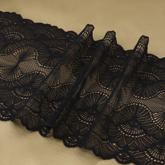 Кружевная эластичная ткань, 180 мм × 2,7 ± 0,5 м, цвет чёрный