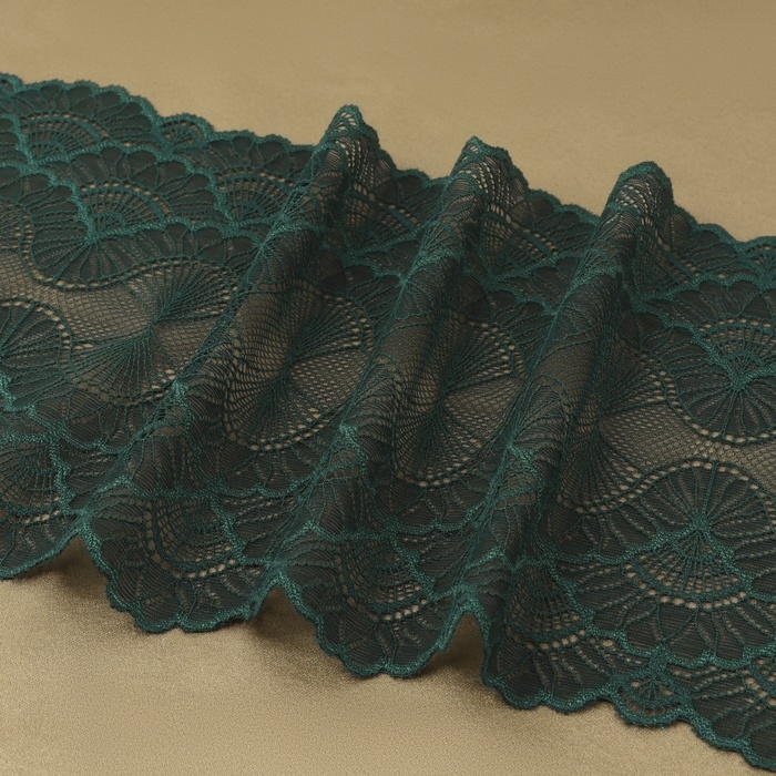 Кружевная эластичная ткань, 180 мм × 2,7 ± 0,5 м, цвет изумрудный
