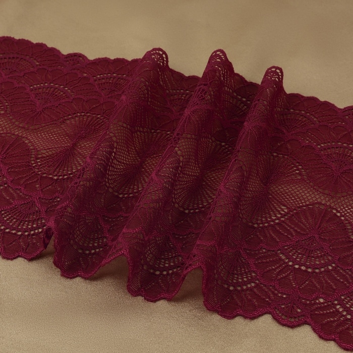 Кружевная эластичная ткань, 180 мм × 2,7 ± 0,5 м, цвет бордовый