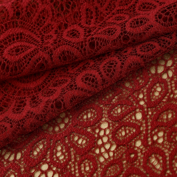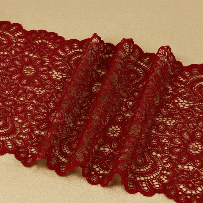 Кружевная эластичная ткань, 190 мм × 2,7 ± 0,5 м, цвет бордовый