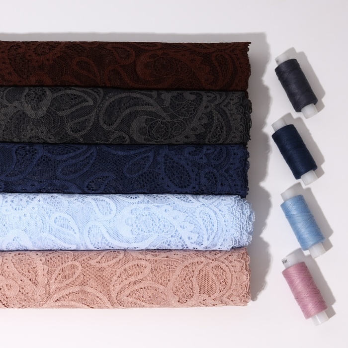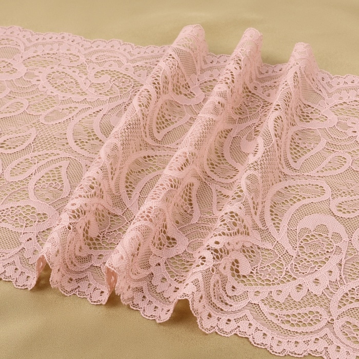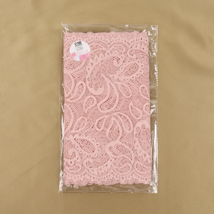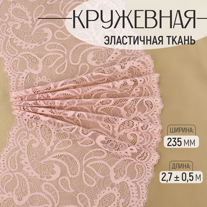 Кружевная эластичная ткань, 235 мм × 2,7 ± 0,5 м, цвет розово-бежевый