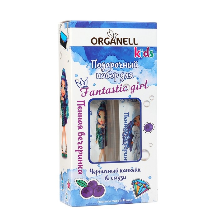 Набор детский ORGANELL "Черничный капкейк и смузи": 2 в 1 гель для душа и шампунь, 250 мл + пена для ванн, 250 мл
