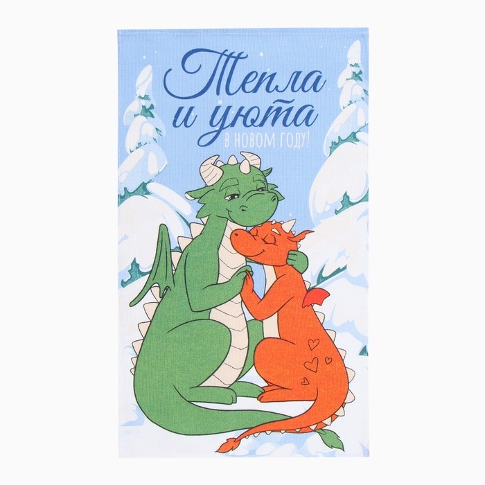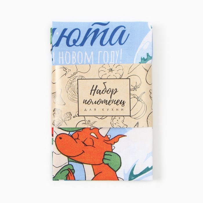 Новый год. Набор полотенец Доляна "Дракончики" 28х46 см - 2 шт, 100% хл, рогожка 164 г/м2