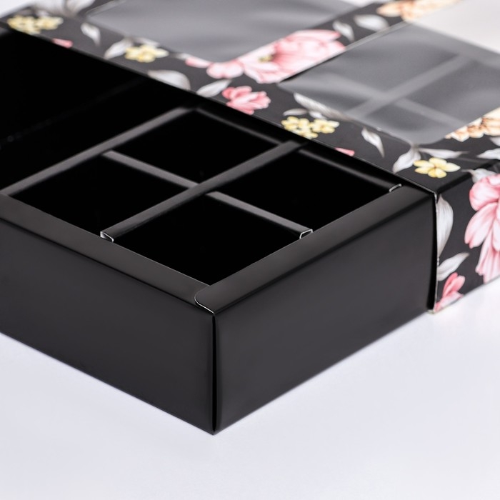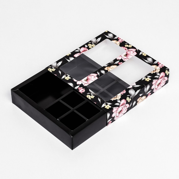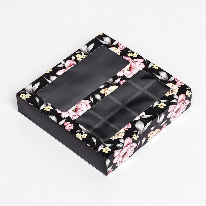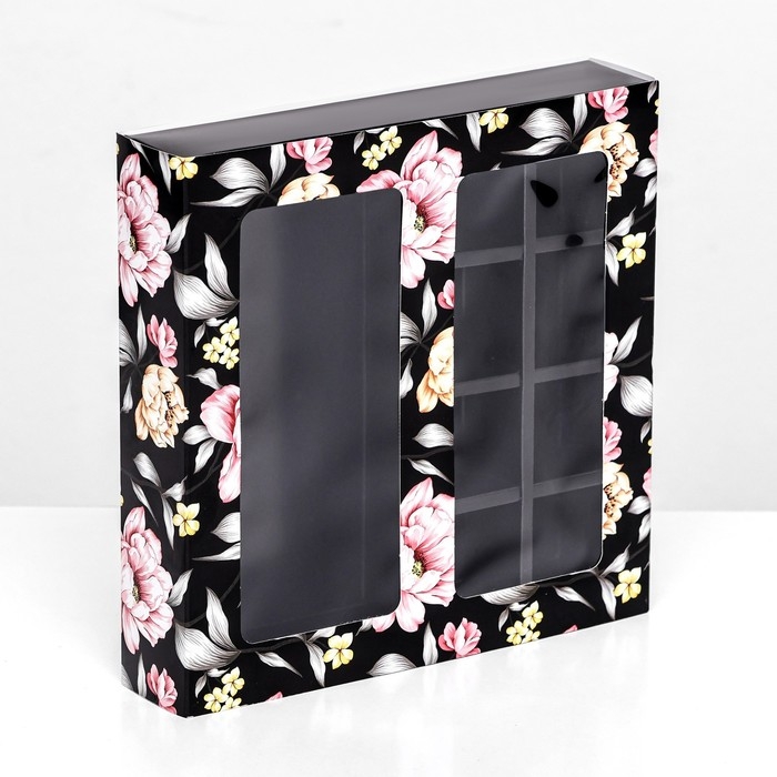Коробка для 8 конфет + шоколад, с окном , "Цветочки" 17,7 х 17,8 х 3,8 см. Кондитерская упаковка