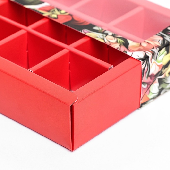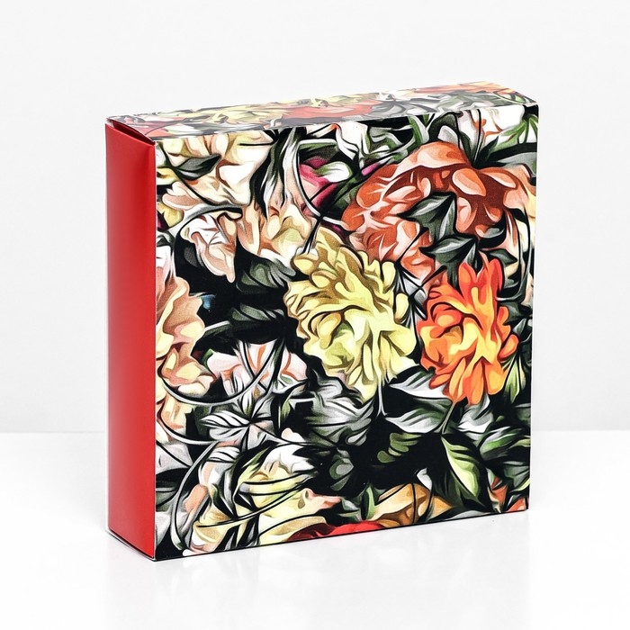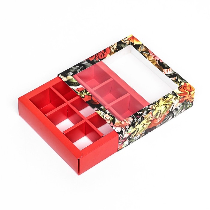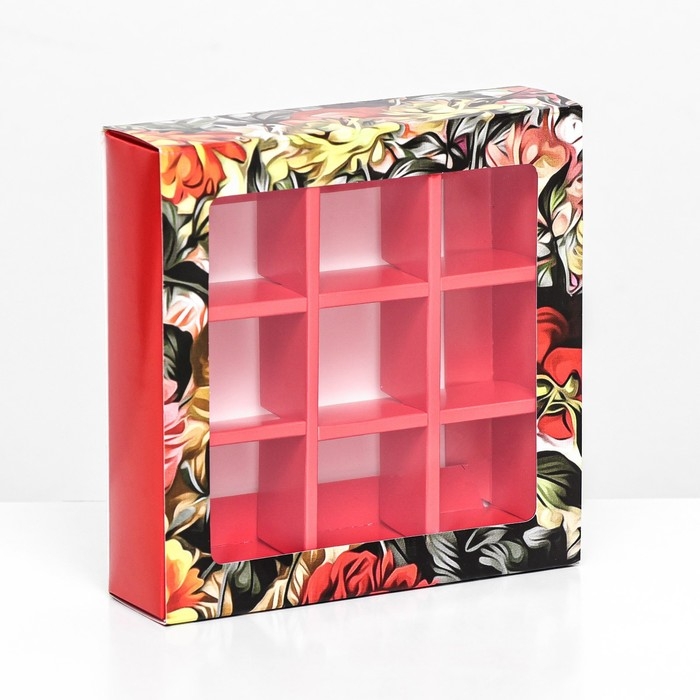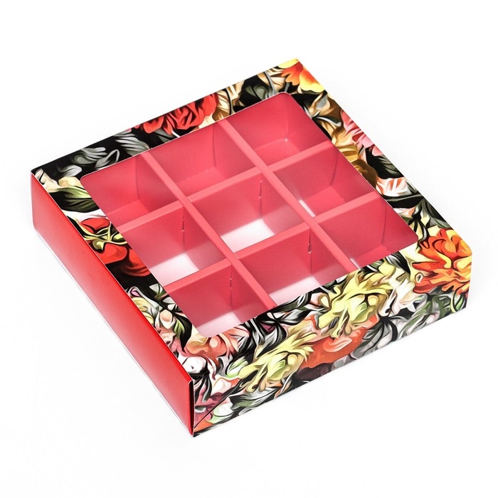 Коробка для 9 конфет с обечайкой , "Цветочки" 13,8 х 13,8 х 3,8. Кондитерская упаковка