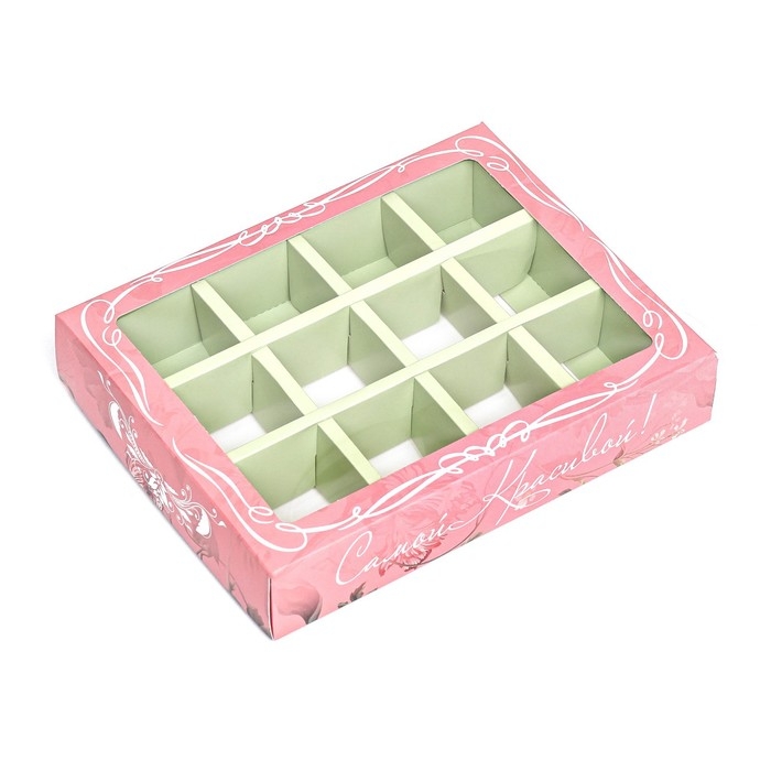 Коробка для 12 конфет, "Самой красивой" 19 х 15 х 3,6 см. Кондитерская упаковка