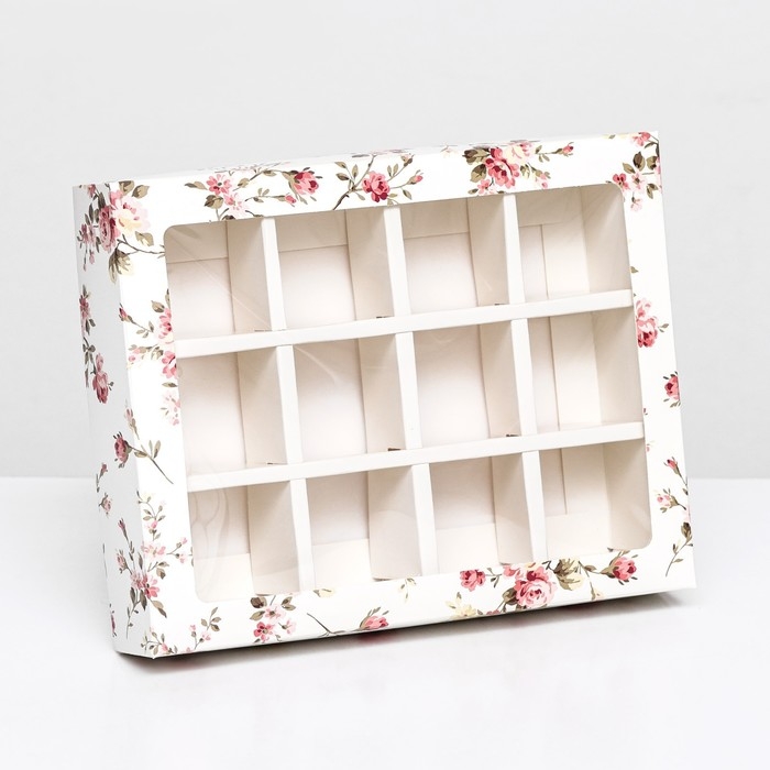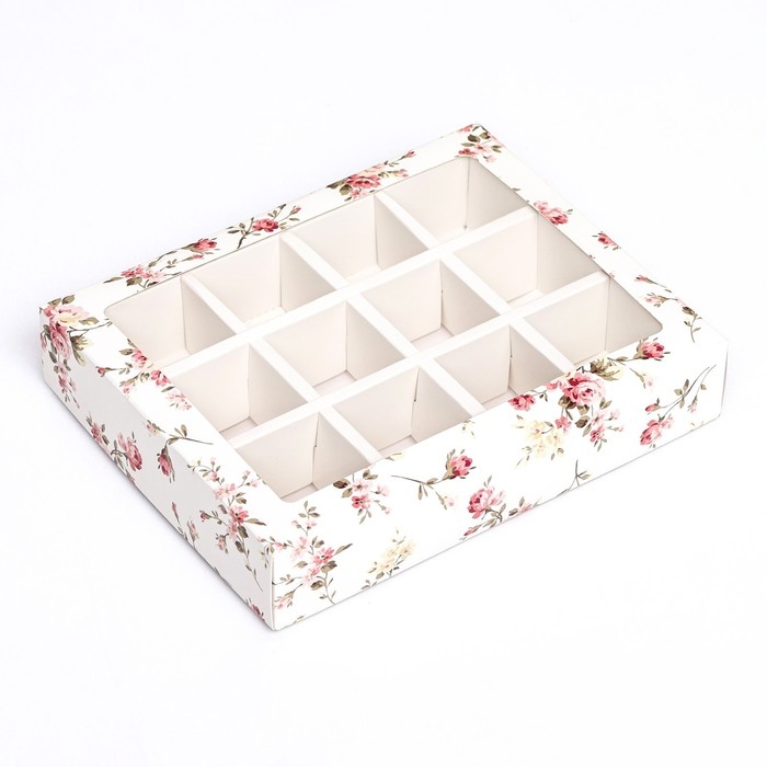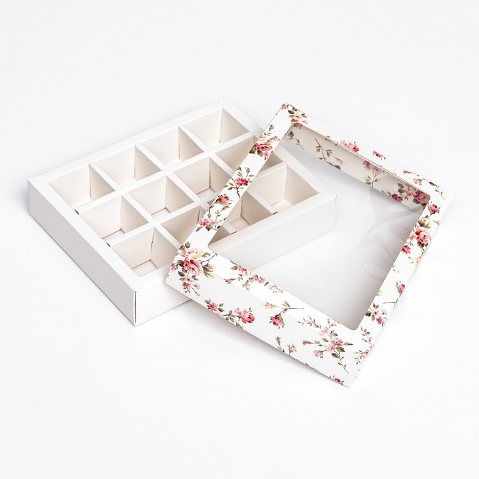 Коробка для 12 конфет "Цветы" 19 х 15 х 3,6 см. Кондитерская упаковка