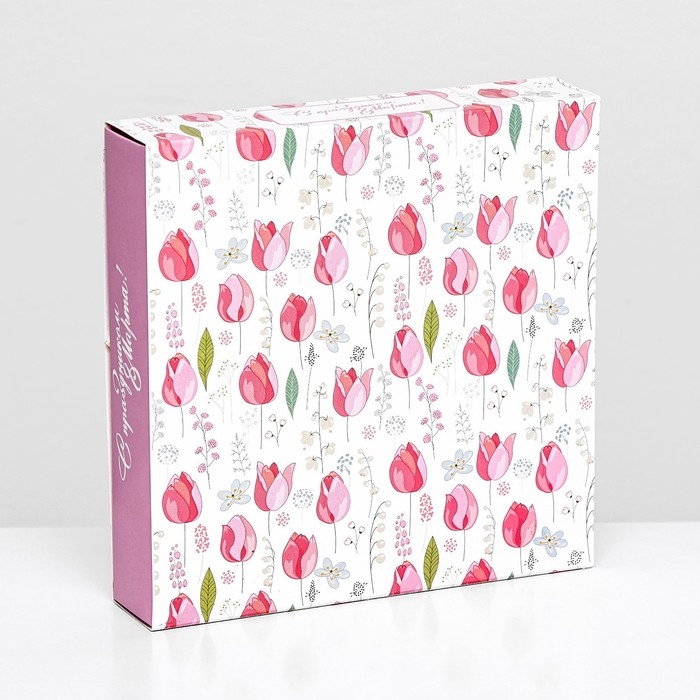 Коробка для 16 конфет, " 8 марта" 17,7 х 17,7 х 3,8 см. Кондитерская упаковка