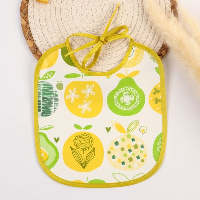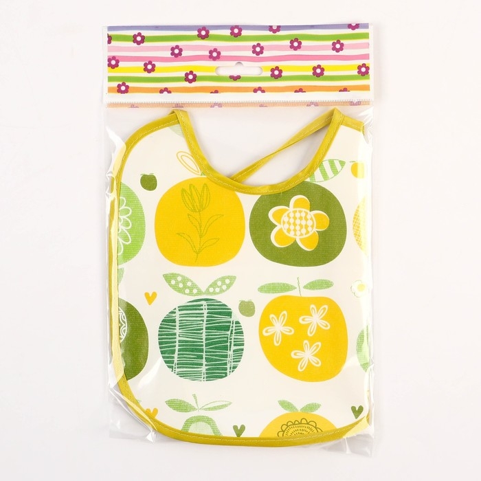 Нагрудник из нетканого полотна с ПВХ покрытием «Яблоки», цвет зеленый, р-р. 20х22см
