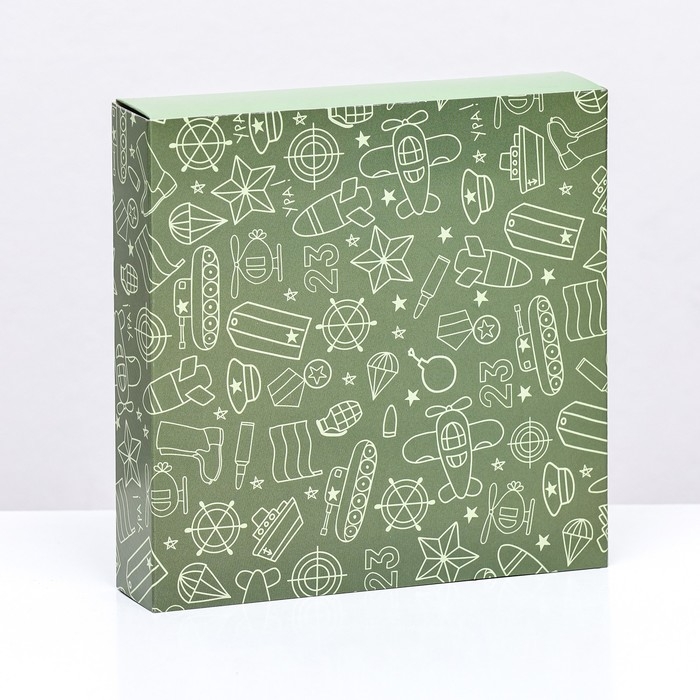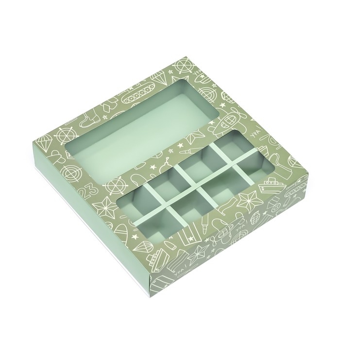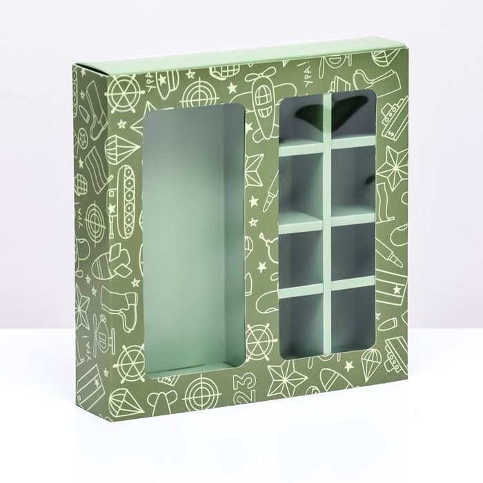 Коробка для 8 конфет + шоколад, с окном , "Военный стиль" 17,7 х 17,8 х 3,8 см. Кондитерская упаковка