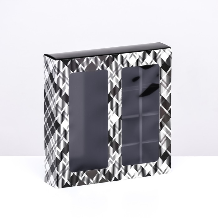 Коробка для 8 конфет + шоколад, с окном , "Мужской" 17,7 х 17,8 х 3,8 см. Кондитерская упаковка