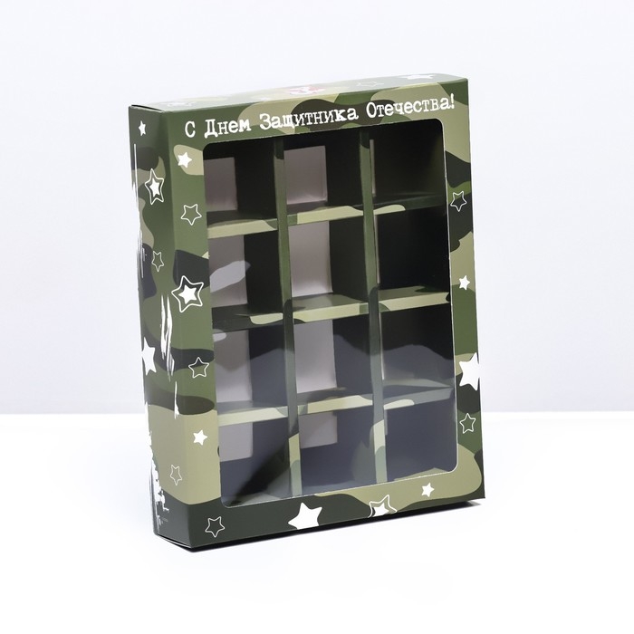 Коробка для 12 конфет , "Камуфляж" 19 х 15 х 3,6 см. Кондитерская упаковка