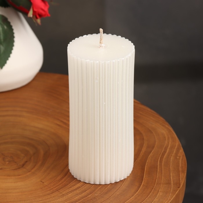 Свеча-цилиндр с гранями, 5х10 см, жемчужная, 6 ч