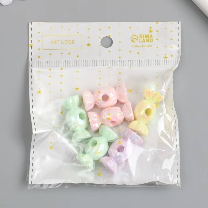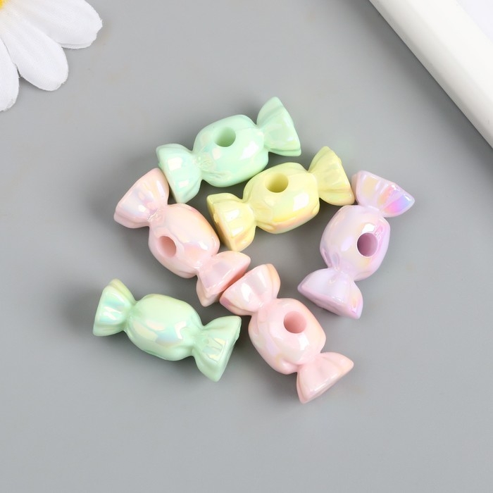 Бусины для творчества пластик "Конфетка" набор 6 шт перламутр нежных цветов 1,4х1,4х2,9 см