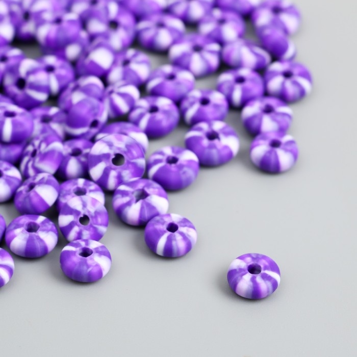 Бусины для творчества PVC "Колечки. Фиолетово-белые полосы" набор 112 шт 0,7х0,7х0,3 см