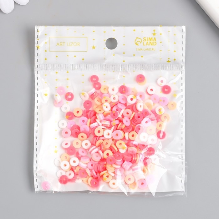 Бусины для творчества PVC "Колечки. Перламутр. Розовый закат" набор ≈ 330 шт 0,1х0,6х0,6 см 989737