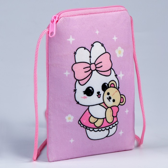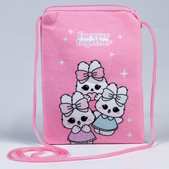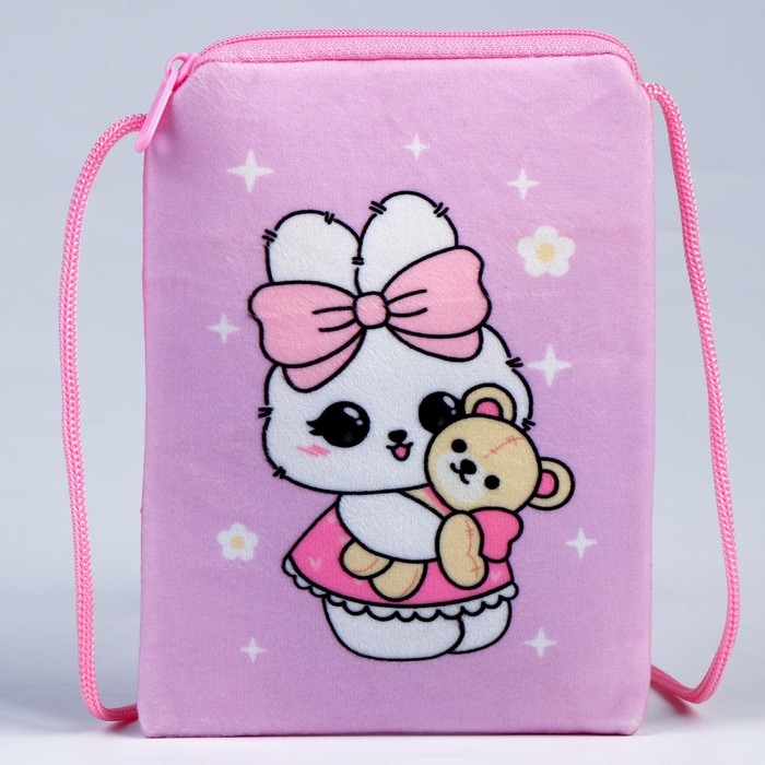 Сумка детская плюшевая "Зайчонок с мишкой" плоская
