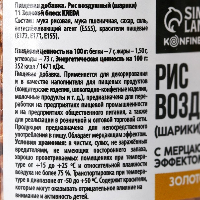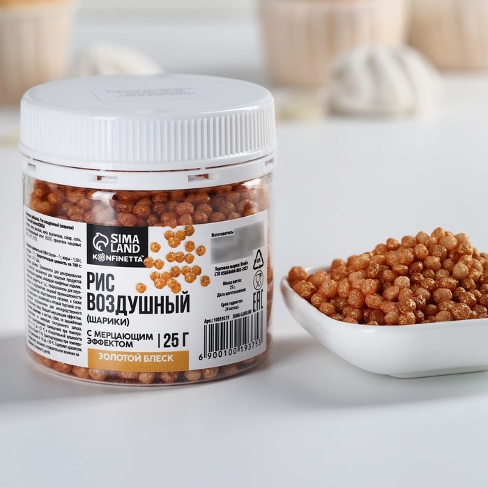 Рисовые шарики блестящие «Золотые» для капкейков и тортов, 25 г.