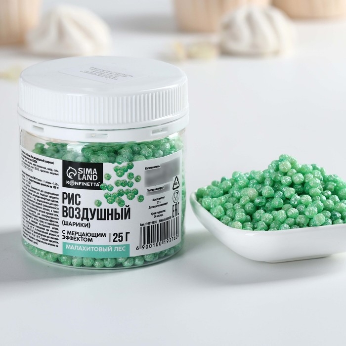 Рисовые шарики блестящие «Зелёные» для капкейков и тортов, 25 г.