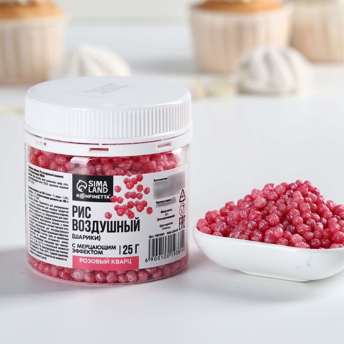 Рисовые шарики блестящие пасха «Розовые» для капкейков, тортов, 25 г.