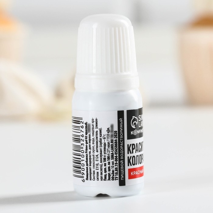 Краситель пищевой гелевый водорастворимый для десертов: красный, 10 мл.