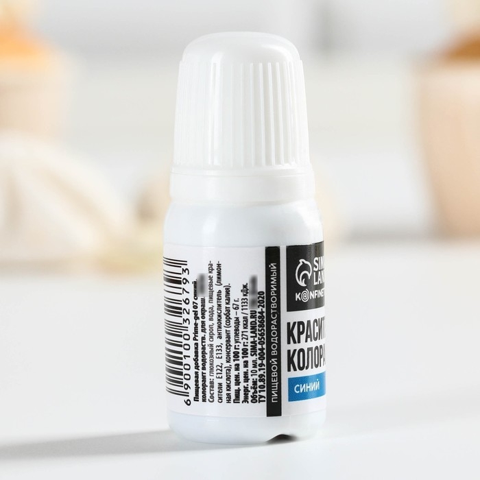 Краситель пищевой гелевый водорастворимый для десертов: синий, 10 мл.