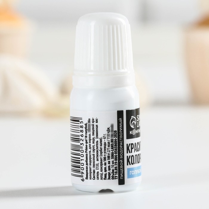 Краситель пищевой гелевый водорастворимый для десертов: голубой, 10 мл.