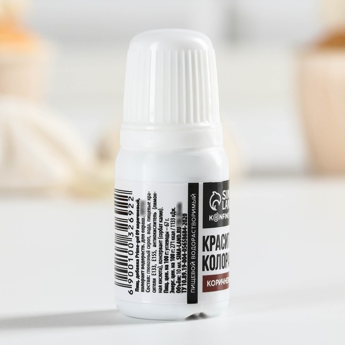 Краситель пищевой гелевый водорастворимый для десертов: коричневый, 10 мл.