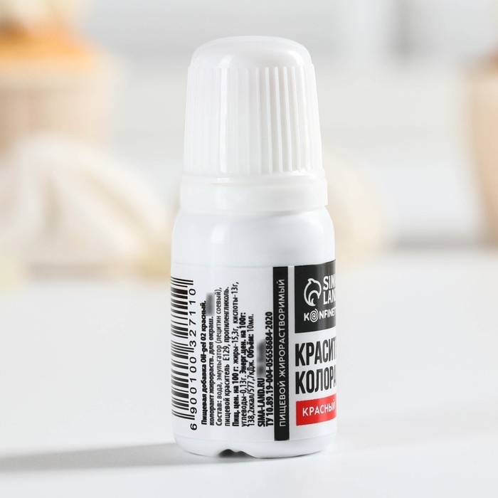 Краситель пищевой гелевый жирорастворимый: красный, 10 мл.