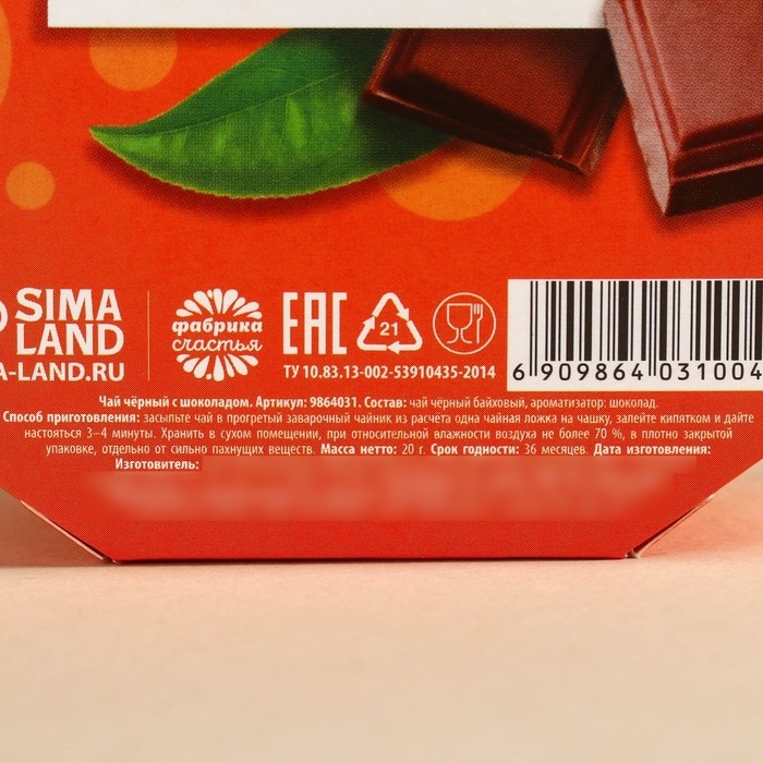 Состав: чай чёрный байховый, ароматизатор: шоколад.
