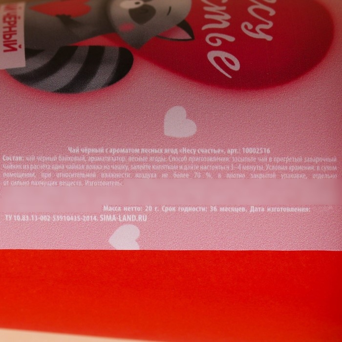 Чай чёрный в бумажном стакане «Несу счастье», вкус: лесные ягоды, 20 г.