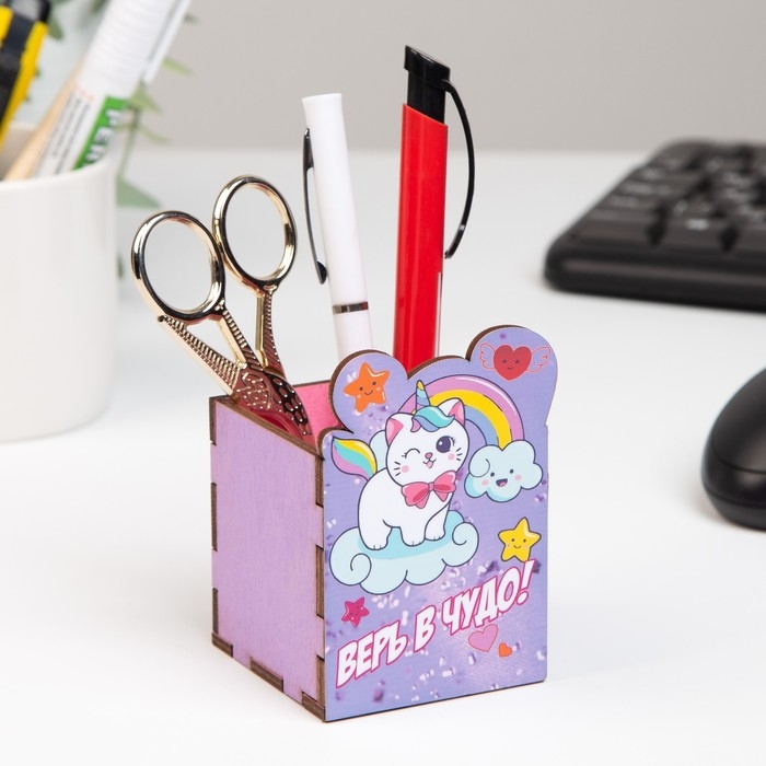 Карандашница "Верь в чудо!" кот, 6х6х10 см