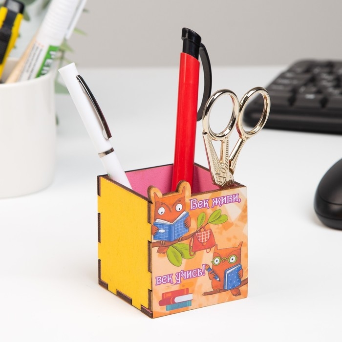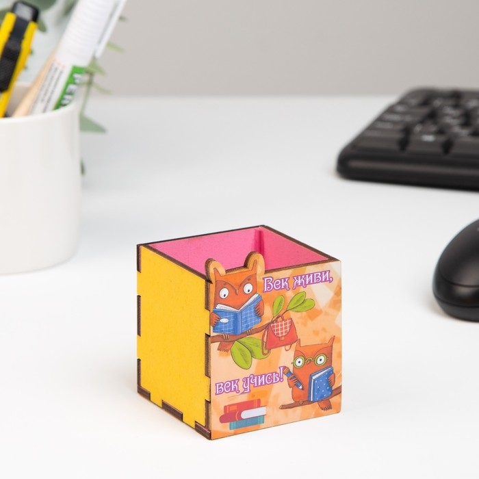 Карандашница "Век живи! Век учись!" сова, 6х6х10 см