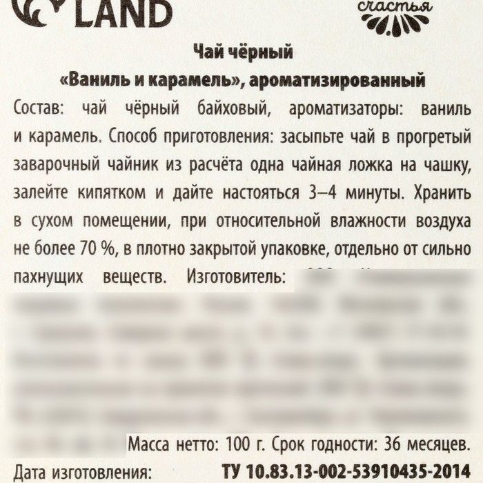 Состав: чай чёрный байховый, ароматизатор: ваниль и карамель.