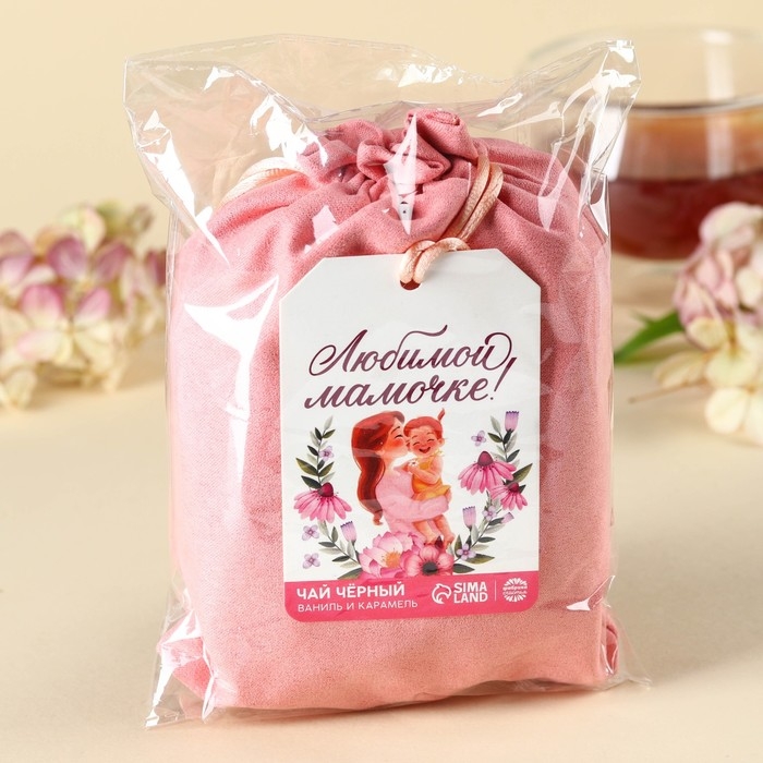 Чай чёрный «Любимой мамочке» в подарочном мешочке, вкус: ваниль и карамель, 100 г.