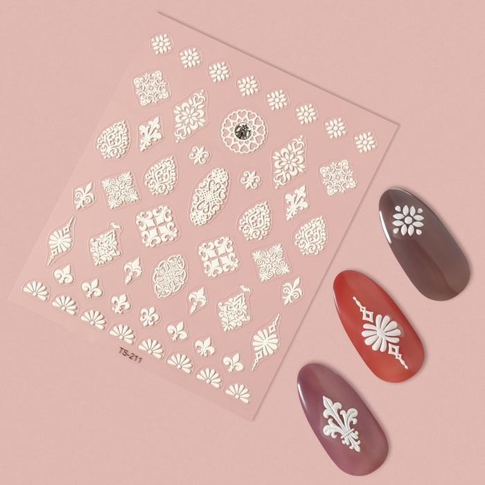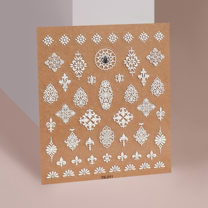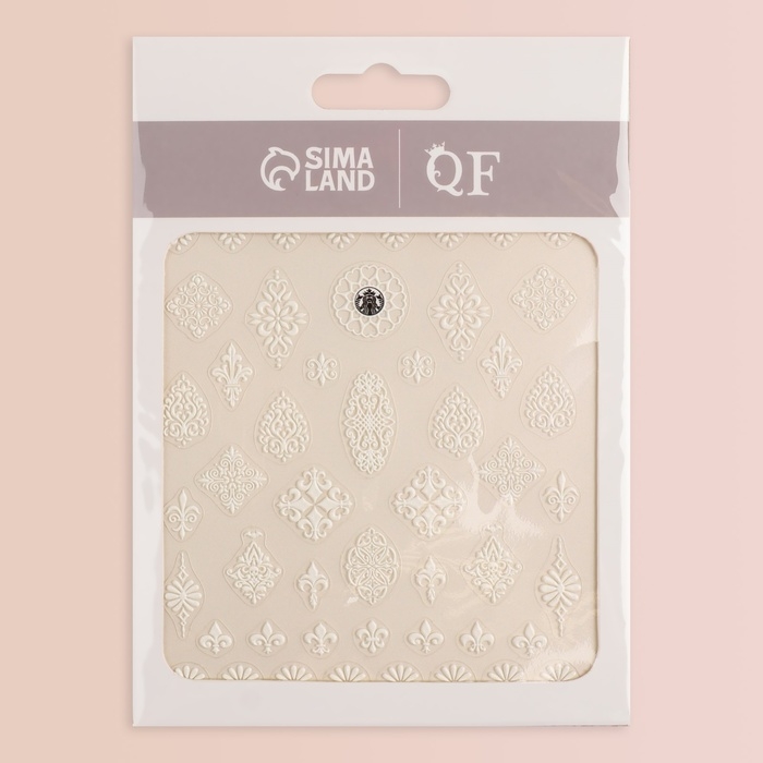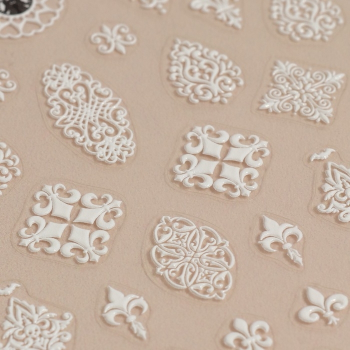Наклейки для ногтей «Арабеска», объёмные, цвет белый