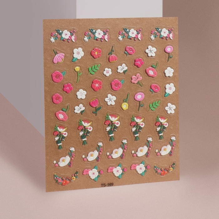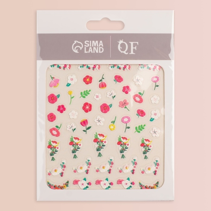 Наклейки для ногтей «Полевые цветы», объёмные, разноцветные