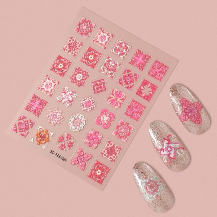 Наклейки для ногтей «Розовая мозаика», объёмные, цвет розовый
