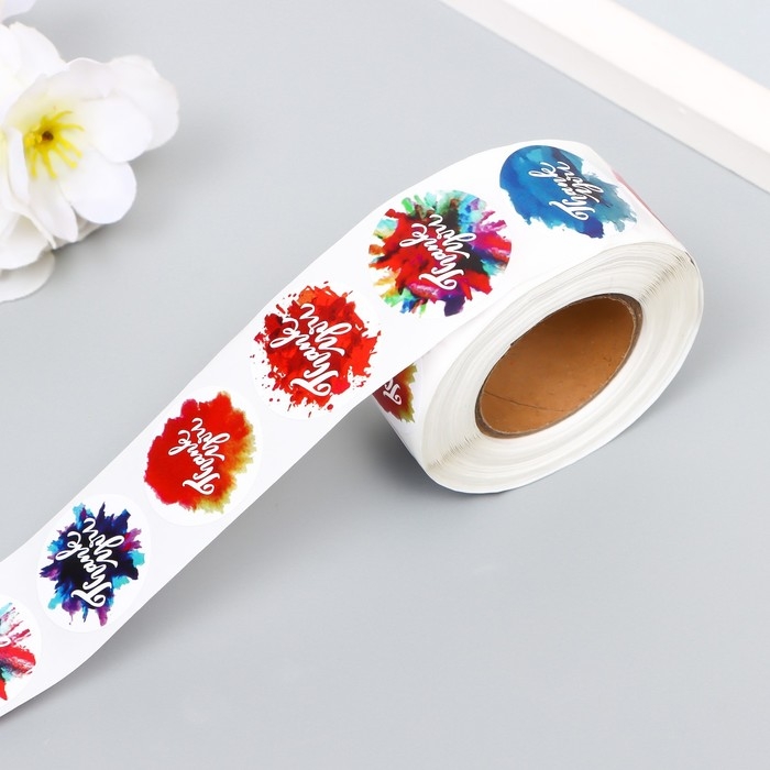 Наклейка бумага "Яркие всплески" d=2,5 см 500 шт в рулоне 3х6х6 см