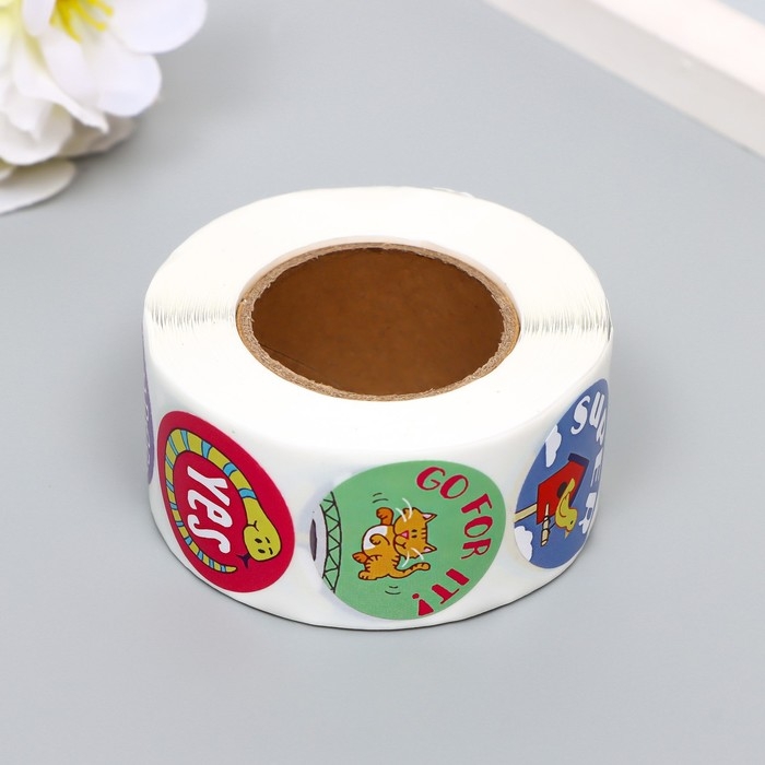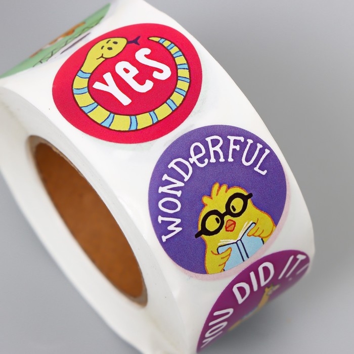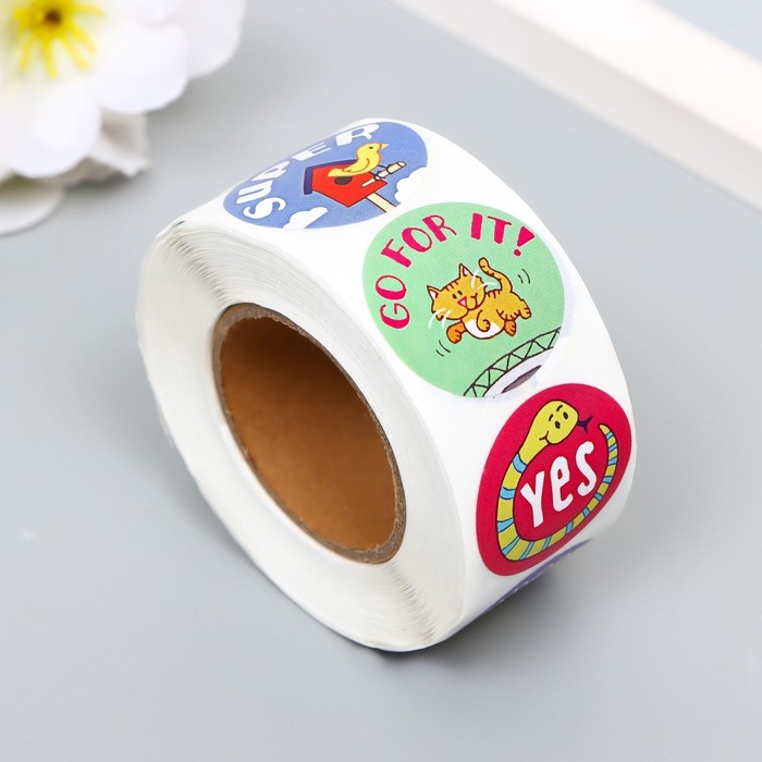 Наклейка бумага "Мотивирующие зверята" d=2,5 см 500 шт в рулоне 3х6х6 см