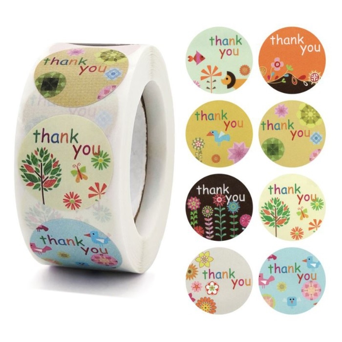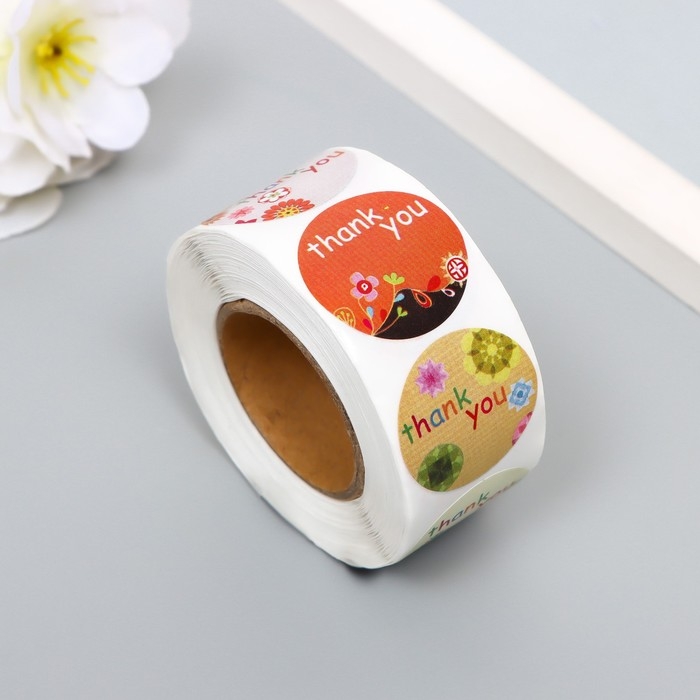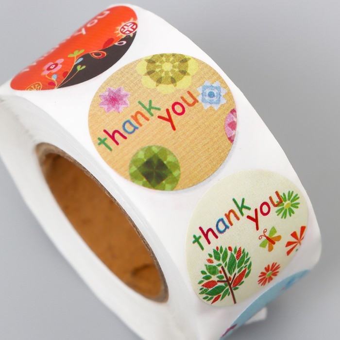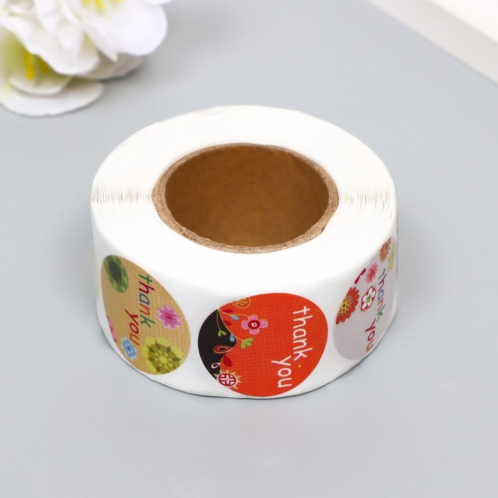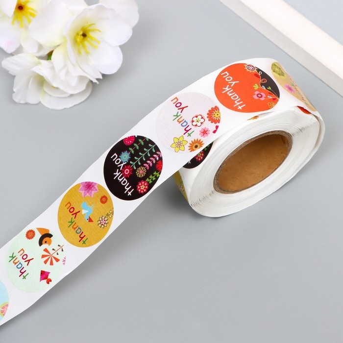 Наклейка бумага "Спасибо" d=2,5 см 500 шт в рулоне 3х6х6 см