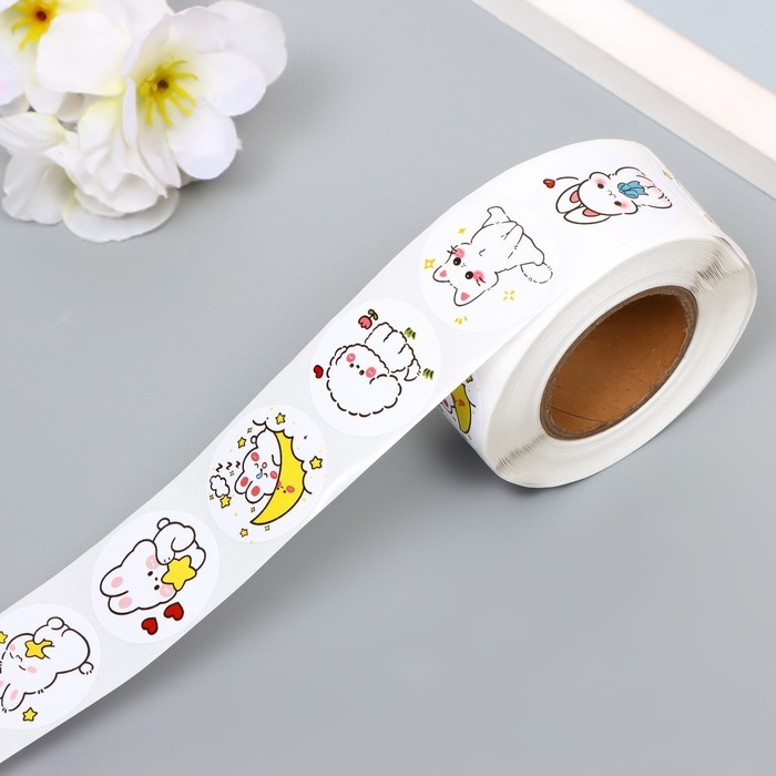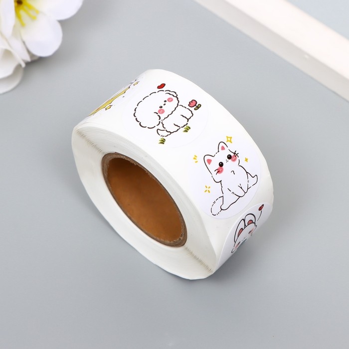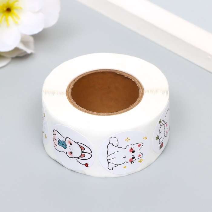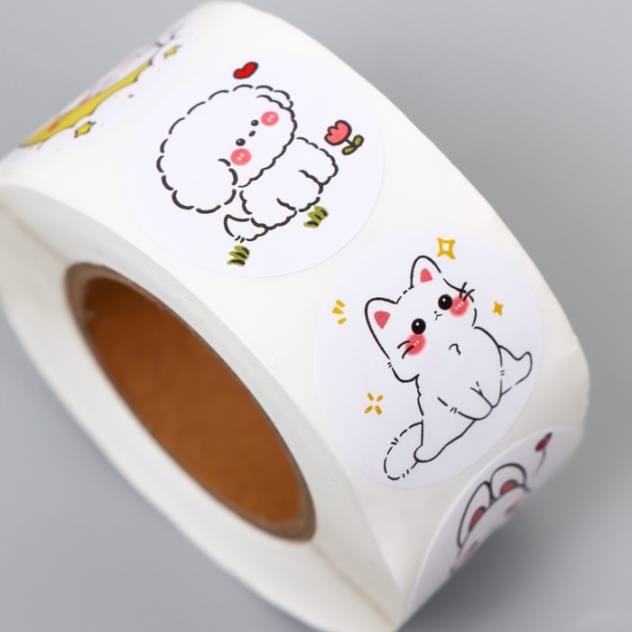 Наклейка бумага "Милашки" d=2,5 см 500 шт в рулоне 3х6х6 см