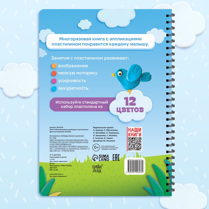 Книга «Многоразовые аппликации пластилином», А4, 21 поделка, 2+