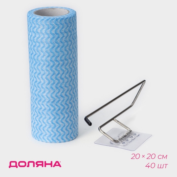 Салфетки в рулоне многоразовые безворсовые в наборе с держателем Доляна, 40 шт, 20×20 см, цвет голубой
