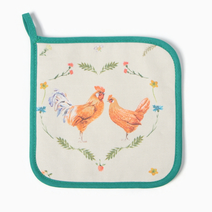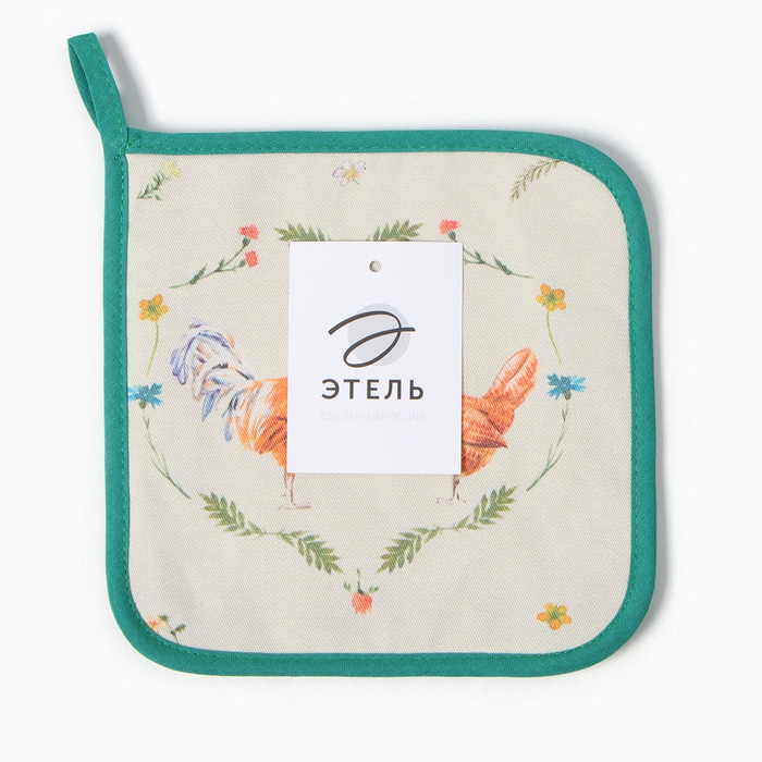 Прихватка Этель "Курочка и петух" 19х19 саржа,100% х/л,ватин 250г/м2