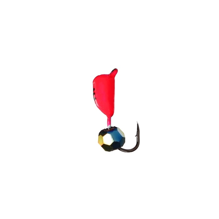 Мормышка Жук красный, чёрная полоска + шар гранен хамелеон, вес 0.9 г