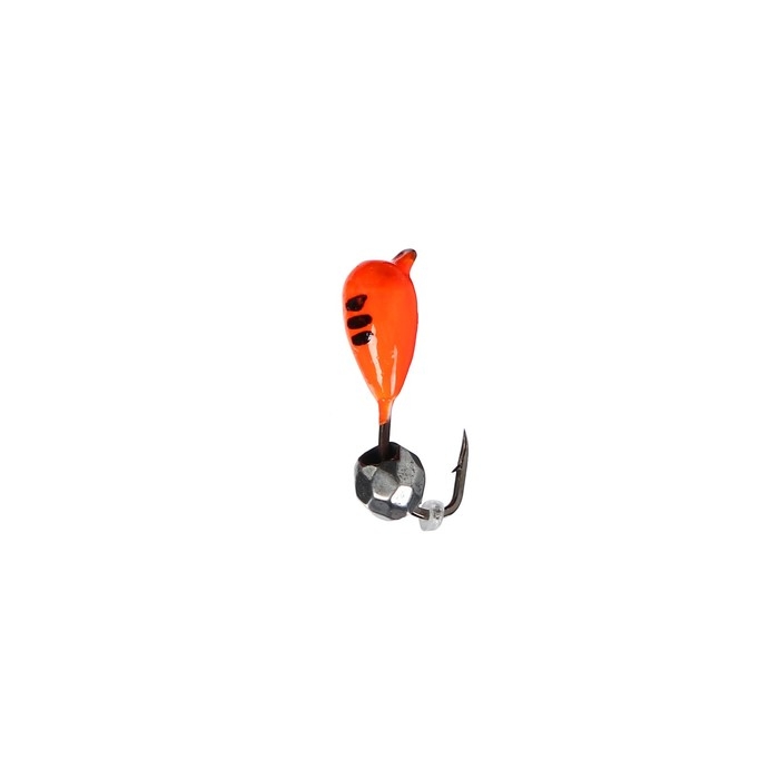 Мормышка Капля оранжевая, чёрная полоска + шар гранен серебро, вес 0.4 г