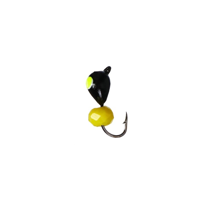 Мормышка Капля чёрная, лайм глаз + шар гранен жёлтый 1.1 г
