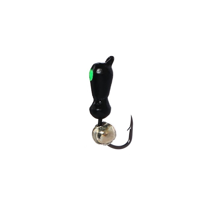 Мормышка Муравей чёрный, зелёный глаз + шар серебро, вес 0.9 г