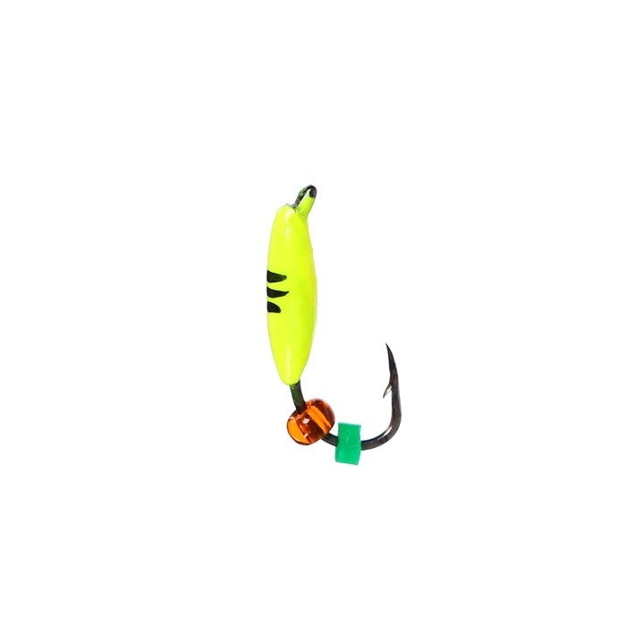 Мормышка Овсинка лайм, чёрная полоска + бисер, вес 0.25 г